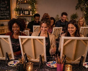 Grab your favorite beverage and leave the rest to us! We'll guide your group step-by-step through a creative getaway at your home, backyard or favorite local venue. It's the perfect way to relax, sip and create lasting memories with friends.