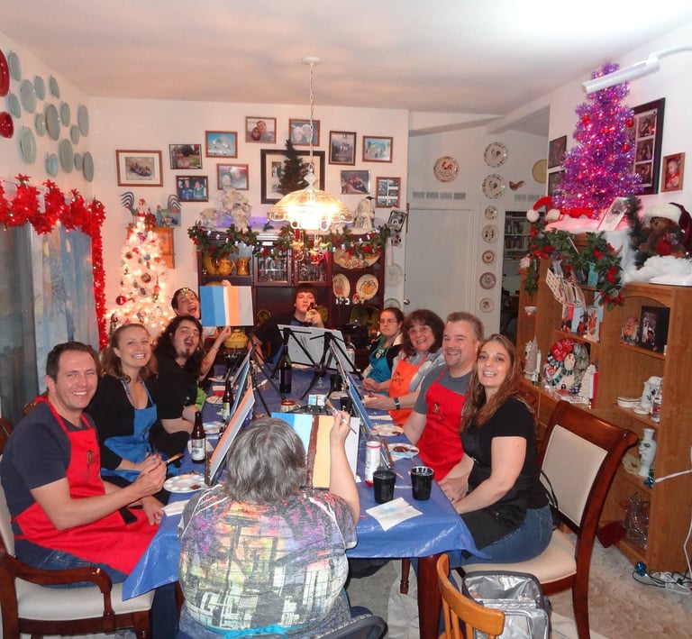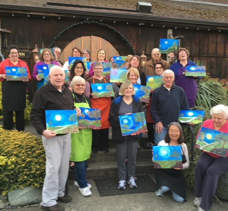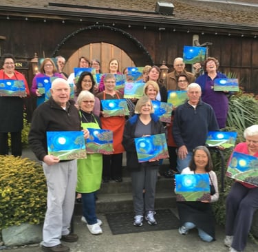 From Church socials to Corporate team building, we bring people together through art. We can comfortably accommodate groups of up to 24 painters; providing all materials and step-by-step instructions for a memorable, creative event.