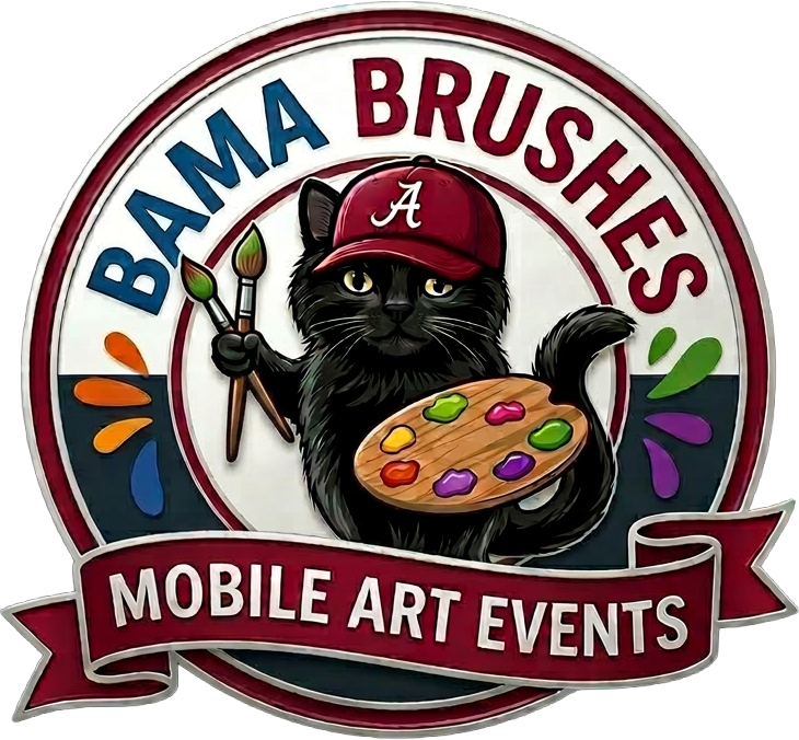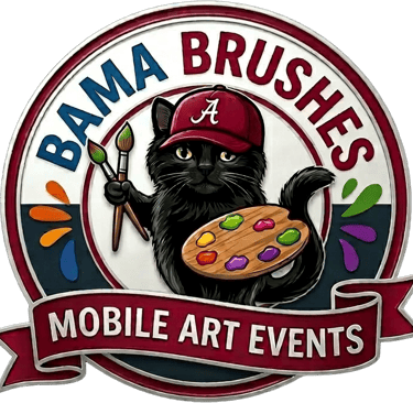 Bama Brushes brings the entire studio to you! From outdoor gatherings to private venues, we handle the setup so you and all your guests can relax and have fun!