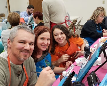From Church socials to Corporate team building, we bring people together through art. We can comfortably accommodate groups of up to 24 painters; providing all materials and step-by-step instructions for a memorable, creative event.